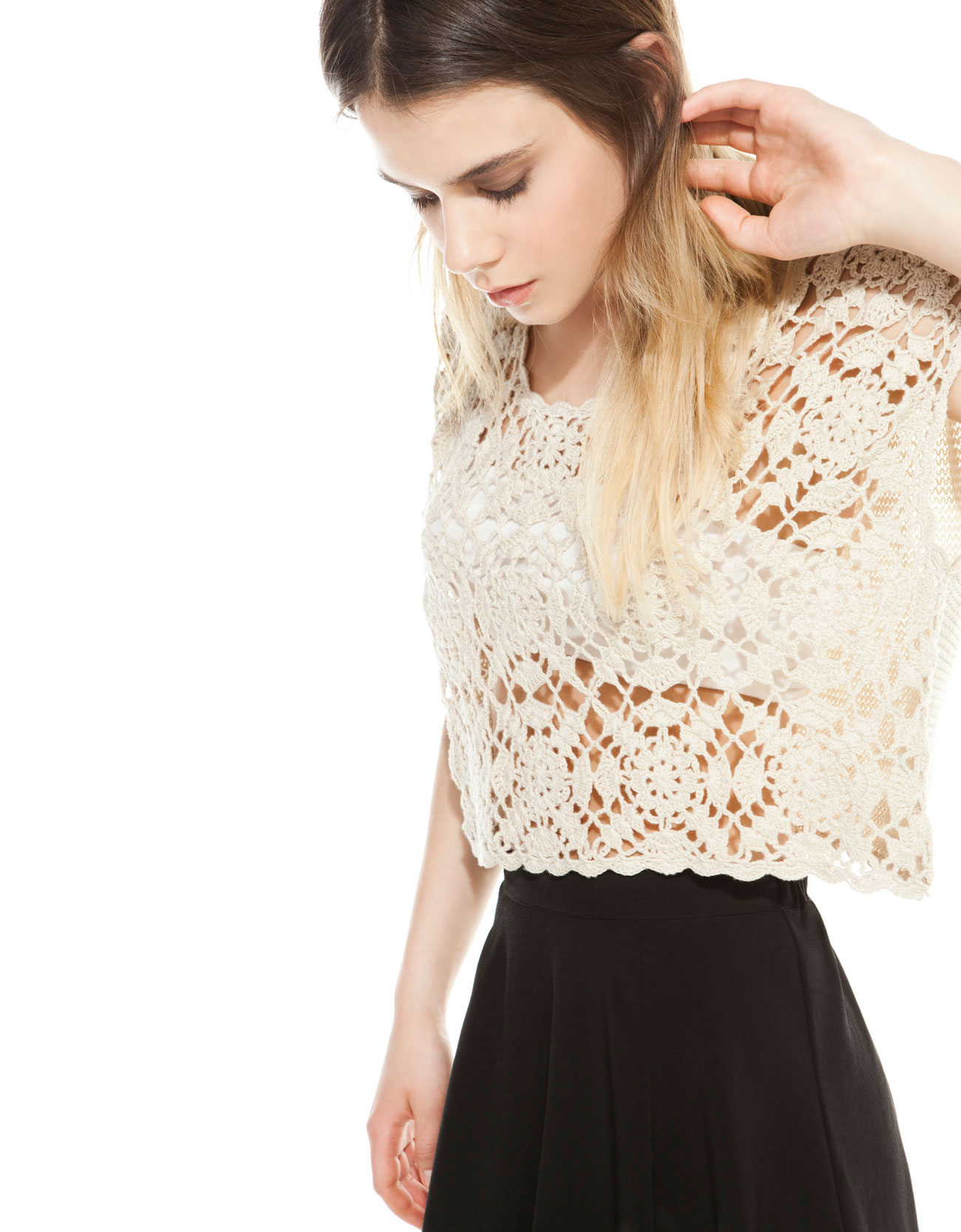 Bershka has't skirts or dresses with mori lines, but it has is a selection of interesting, cute and affordable accessories, crochet vests and sweaters, bags and shoes suited for this style.